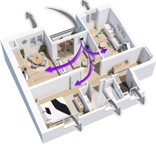 Ventilation performante et traitement de l’air jusqu’à 80 m²